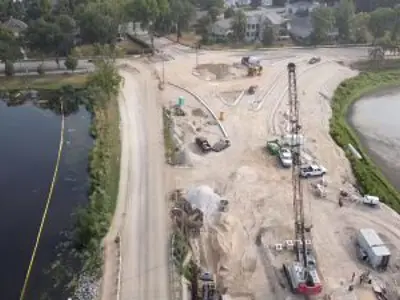 | 2021 (Winter / Spring / Summer) | Construction – Excavating and installing piles, construction of three arched concrete culvert foundations, construction of roundabouts, pouring concrete collars and concrete block wall installation, electrical conduit installation, installation of gravel base, forming of concrete curbs, paving, etc | |
