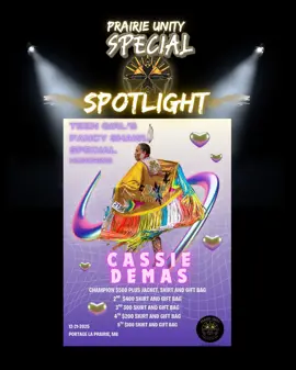 To celebrate this milestone, Cassie will be hosting a Teen Girls Fancy Shawl Special at the Prairie Unity Competition Pow Wow.
